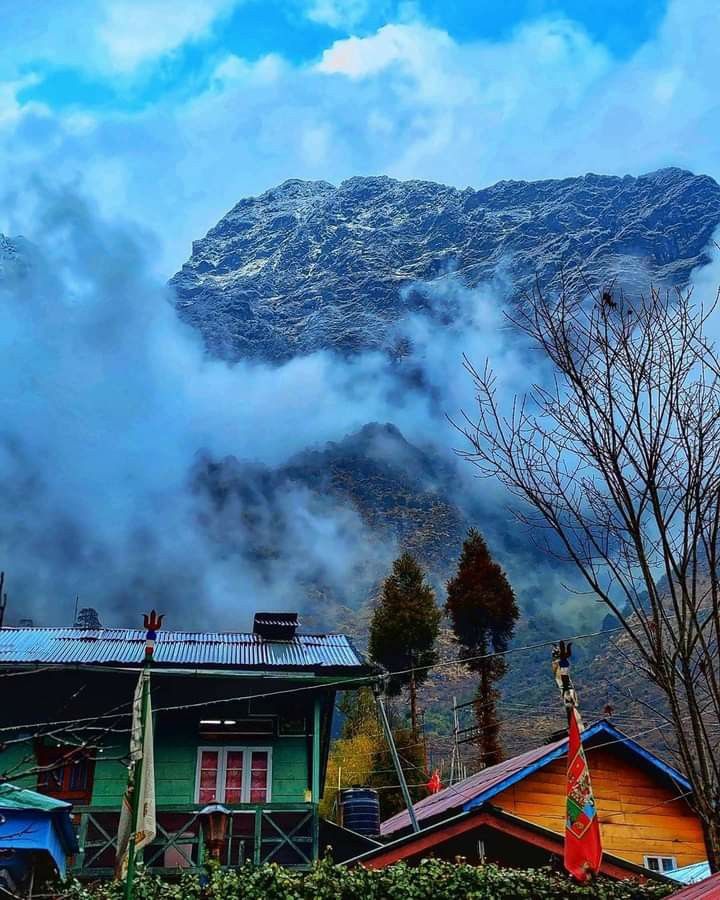 Sikkim stands beneath the blue skies.